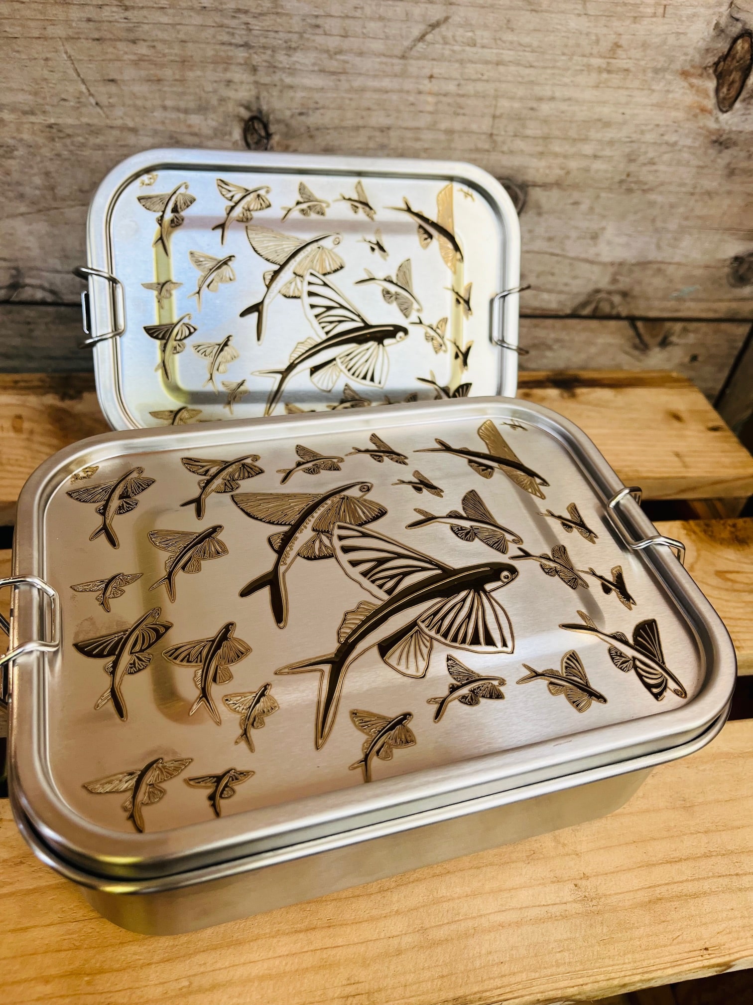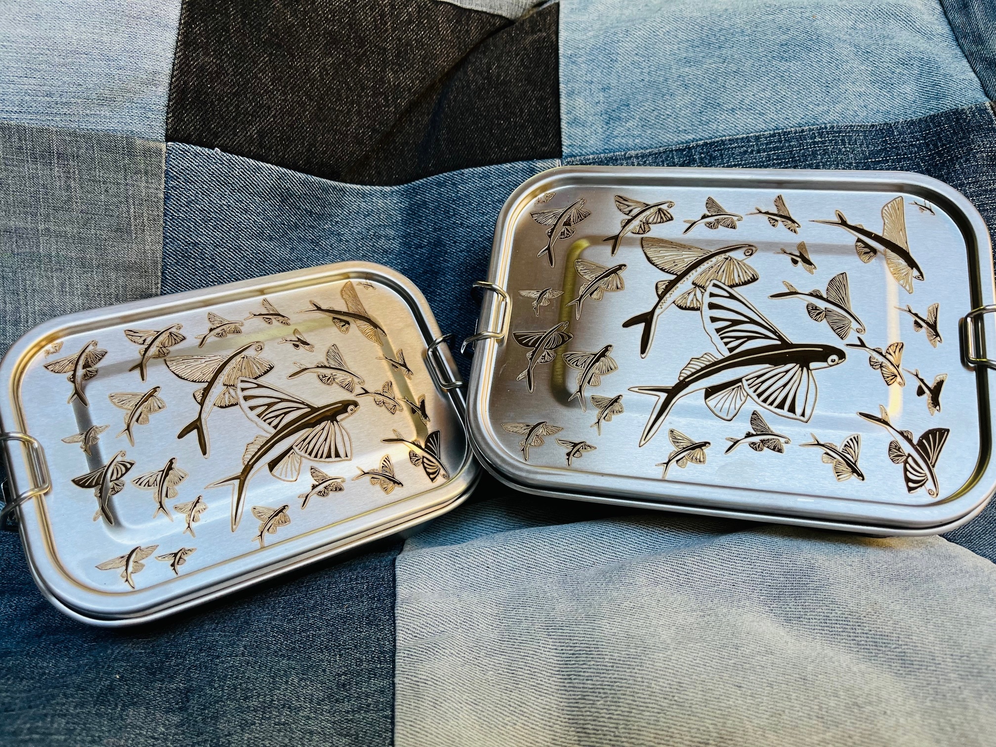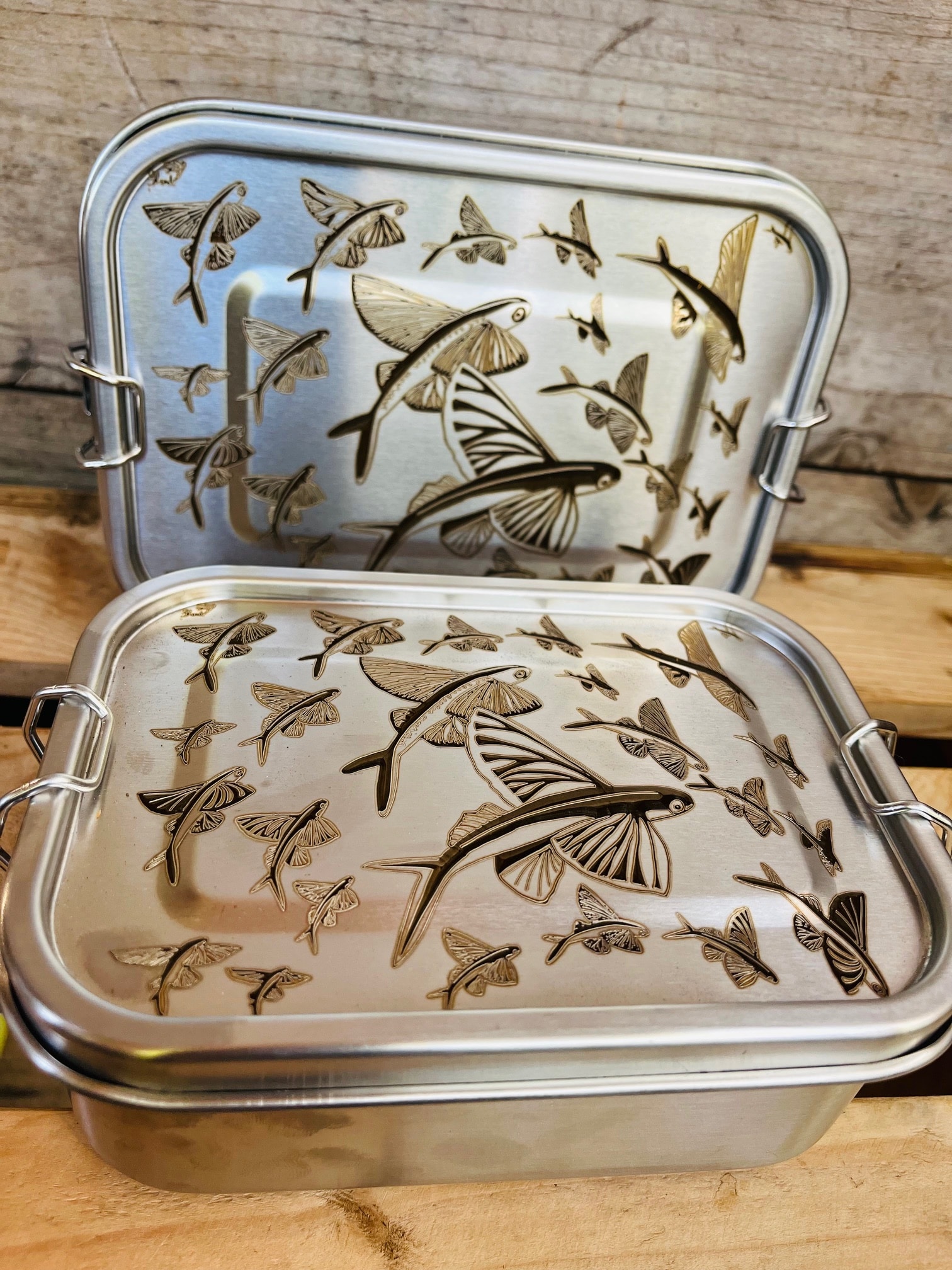 Décorée par des artistes réunionnais, la barquette à repas Goodbye Plastic ! est idéale pour transporter votre repas au bureau, en pique nique ou en randonnée. Son séparateur amovible permettra de moduler l’espace et compartimenter les aliments. Pour le gouter des enfants, la barquette en inox est pratique car elle s’ouvre et se referme facilement grâce à ses 2 clips.