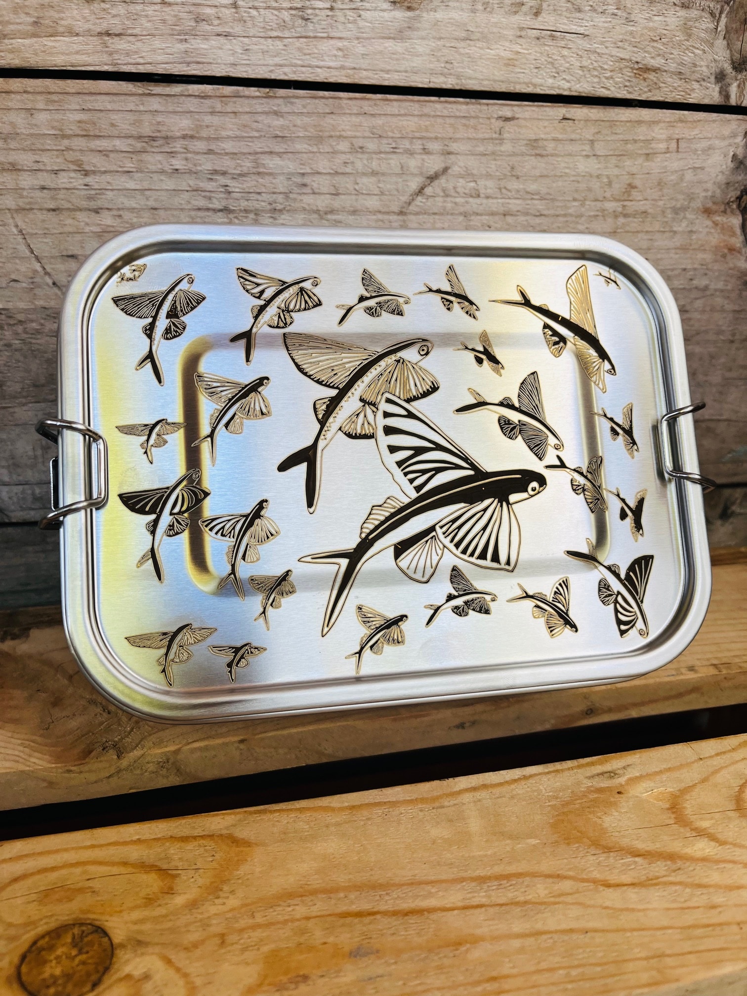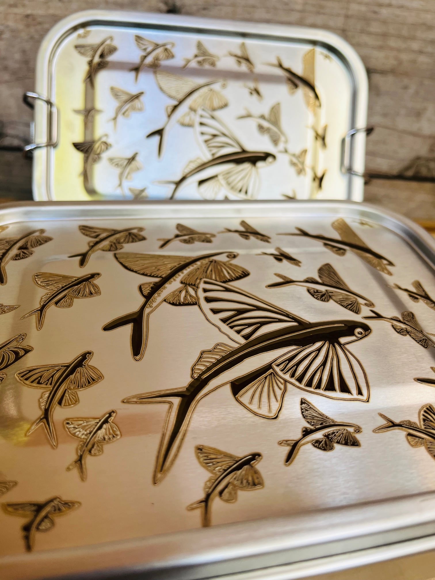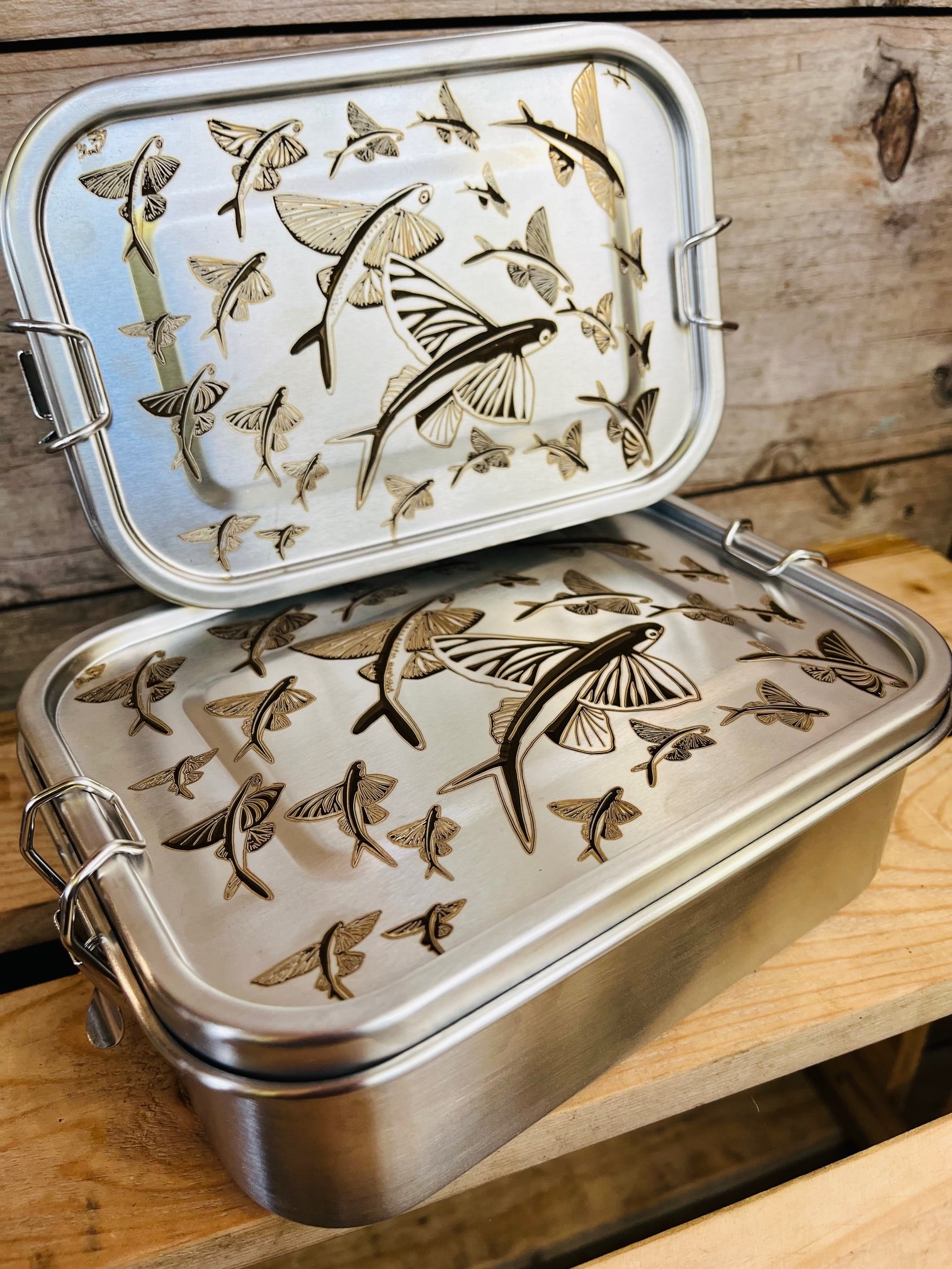 Décorée par des artistes réunionnais, la barquette à repas Goodbye Plastic ! est idéale pour transporter votre repas au bureau, en pique nique ou en randonnée. Son séparateur amovible permettra de moduler l’espace et compartimenter les aliments. Pour le gouter des enfants, la barquette en inox est pratique car elle s’ouvre et se referme facilement grâce à ses 2 clips.